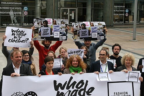 תנועת מהפכת האופנה מפגינים עם ההאשטג #WhoMadeMyClothes צילום: ויקיפדיה